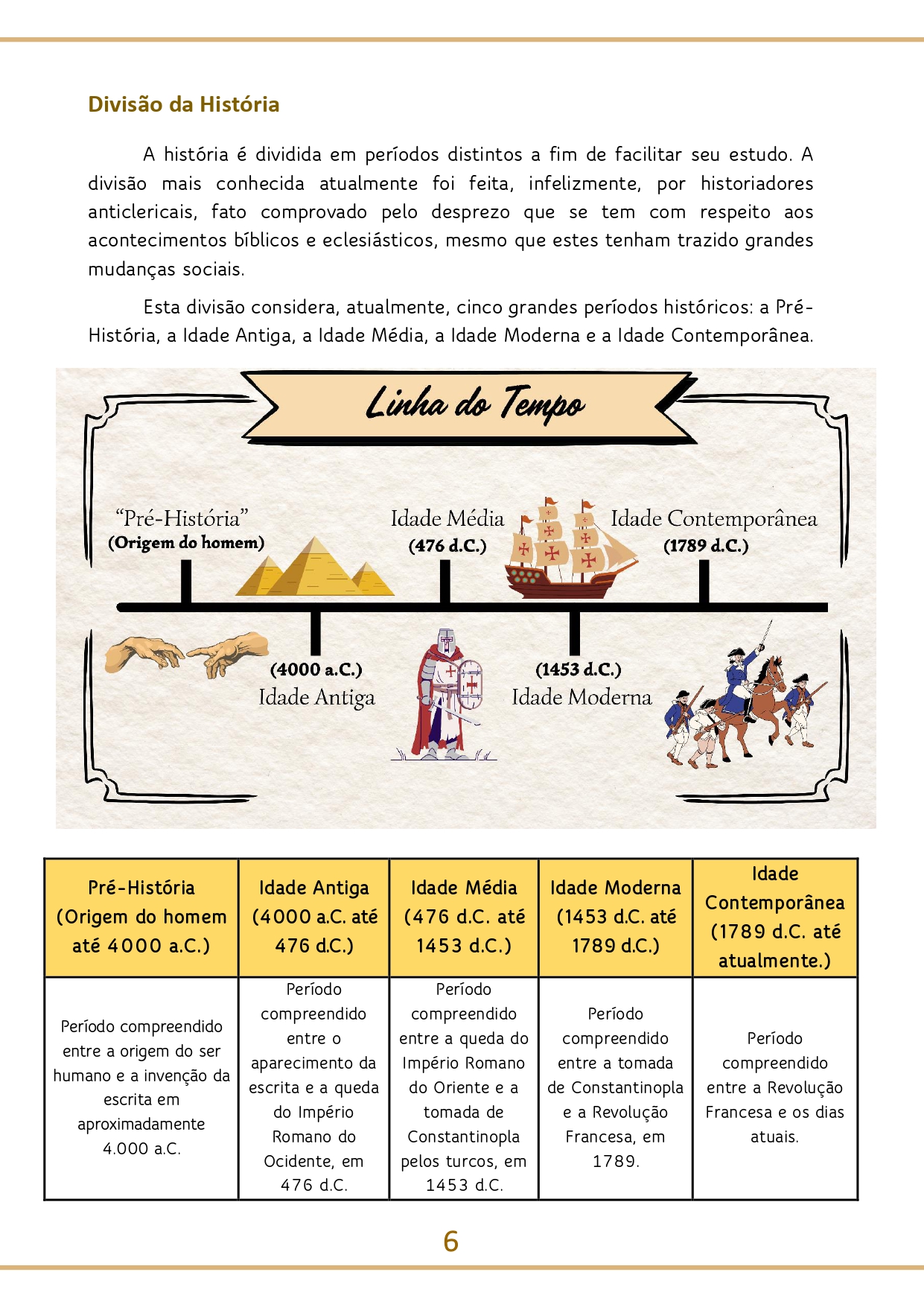 - Currículo bem elaborado: No 6º ano, os adolescentes concentrarão seus estudos principalmente na História da Antiguidade Clássica: Hebreus, Egípcios, Povos da Mesopotâmia, Persas, Gregos, Romanos, Surgimento do Cristianismo e Império Bizantino. Além disso, os alunos estudarão os conceitos históricos fundamentais de forma mais aprofundada, tais como a definição de História, a definição de tempo segundo Aristóteles e a Teologia da História. Recomenda-se conferir o índice que acompanha as imagens para ter uma visão abrangente dos temas abordados e examinar a amostra deste material.